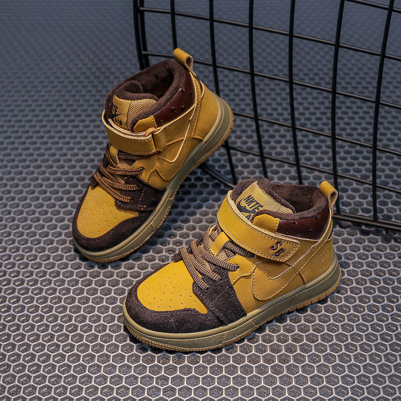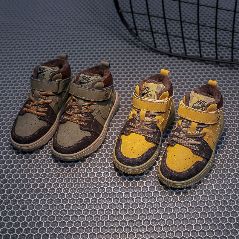 Air jordan, флисовая спортивная обувь для мальчиков, высокая баскетбольная форма, кроссовки, из натуральной кожи