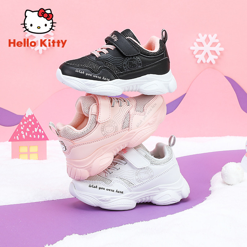 Детская обувь hellokitty, теплая спортивная обувь для девочек, новая зимняя бархатная повседневная зимняя обувь для детей среднего и крупного возраста