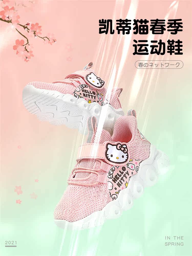 Детская обувь HelloKitty, спортивная обувь для девочек, новинка весны 2021 года, детская обувь с сеткой, детская повседневная обувь маленького и среднего размера
