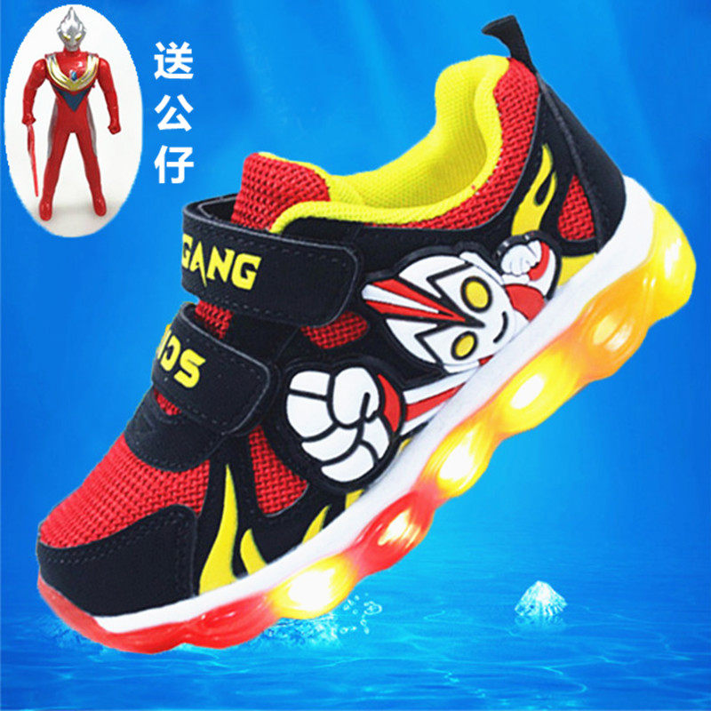 Ultra, весенний Ультрамен Тига для мальчиков, дышащая детская спортивная обувь, коллекция 2021, мигающий свет