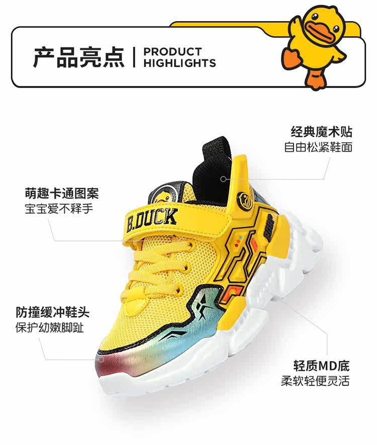 B.Duck Новая детская спортивная обувь «Маленькая желтая утка» для мальчиков на весну и осень, модная повседневная обувь с сеткой среднего и большого размера
