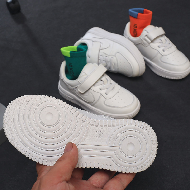 Детская белая обувь для мальчиков, весенняя спортивная обувь, кроссовки, из натуральной кожи