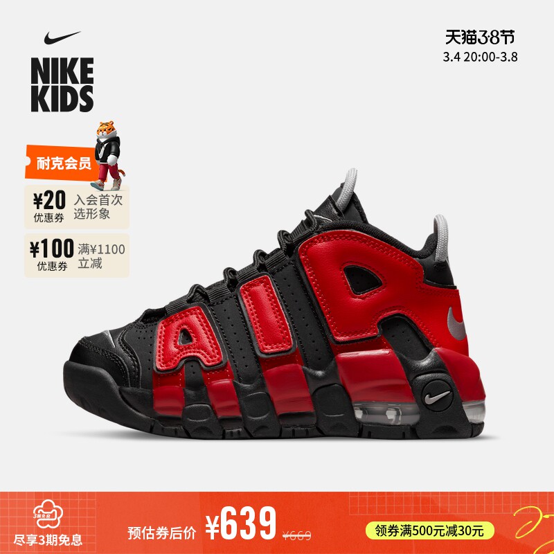 Nike Nike Official Air больше Uptempo Sports Sports детская обувь новая часть кожаной поверхности DM0019