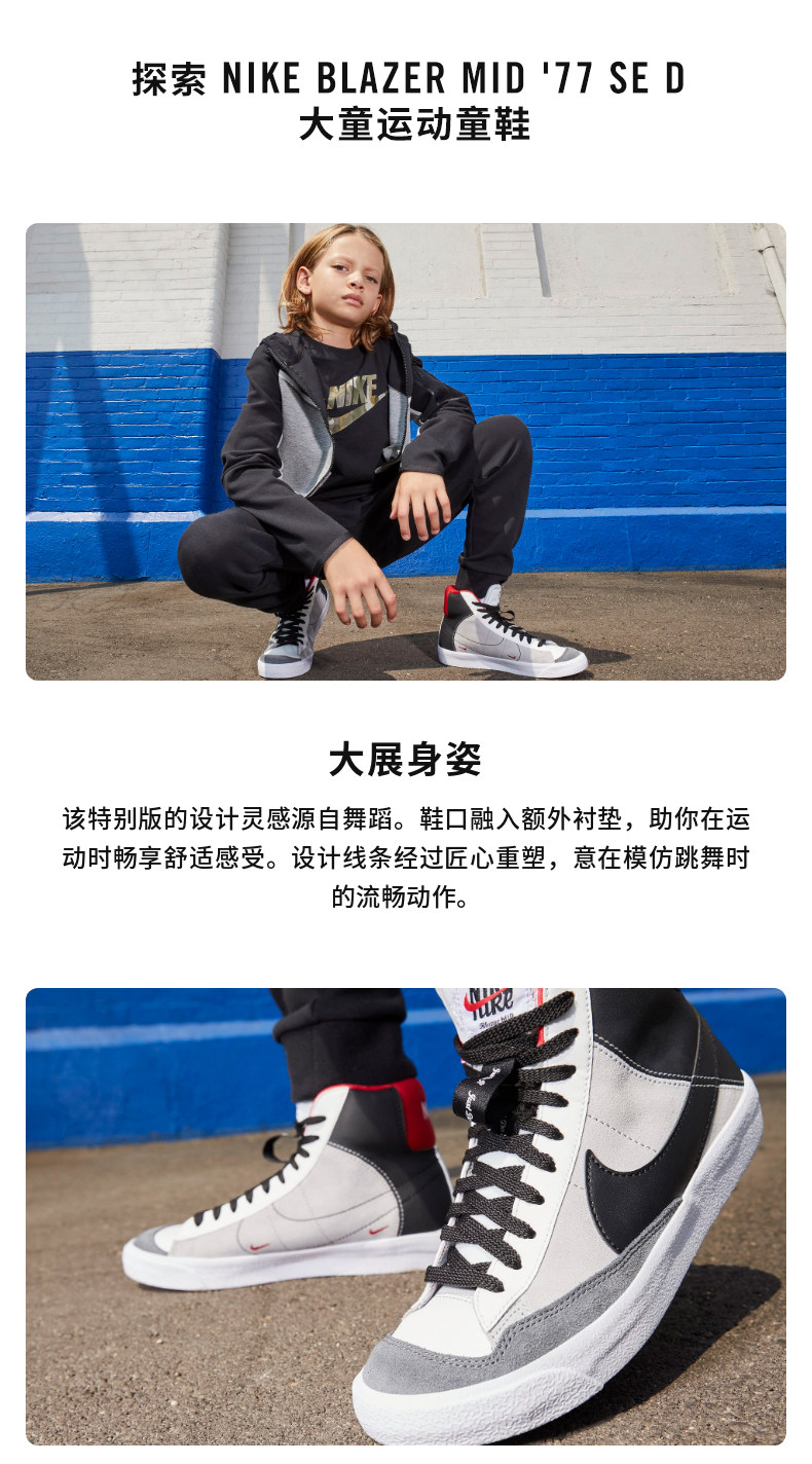 Nike Nike Официальный Blazer Mid'77 Se D Большие детские спортивные детские обувь помогает маленькой белой обуви DH8640