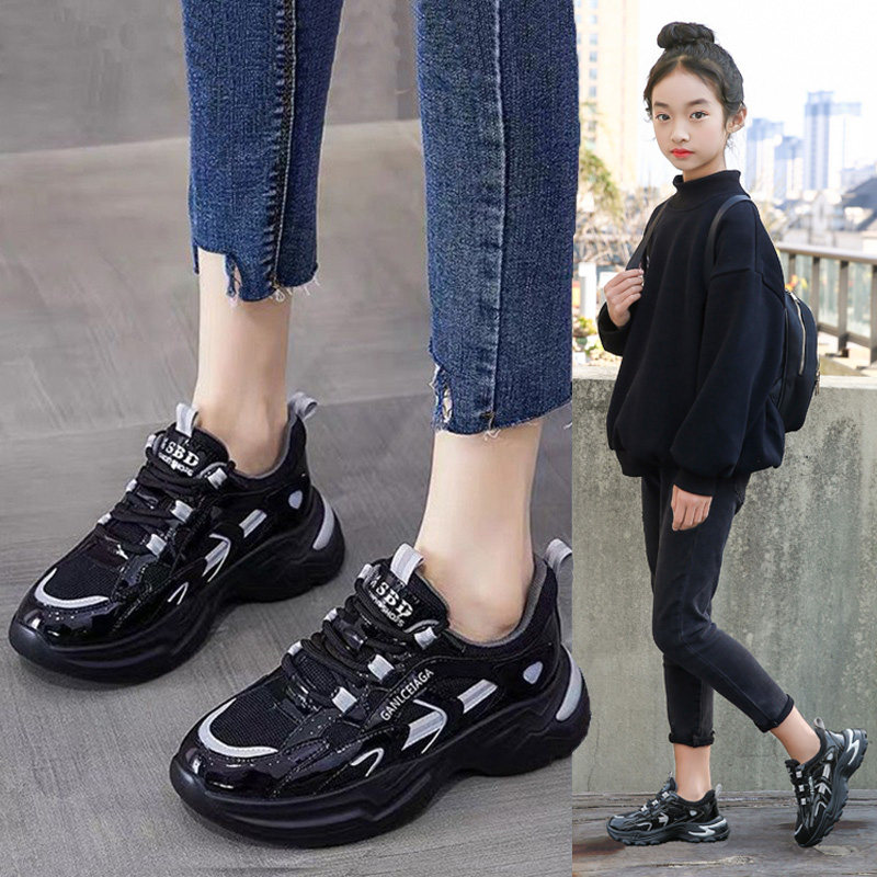Черная детская спортивная обувь, подходит для подростков, модель весна/осень 2024 года, мягкая подошва