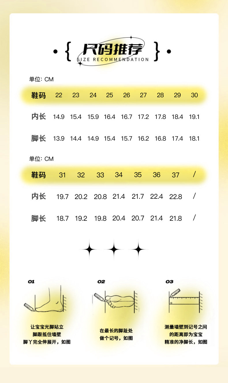| Размер обуви: | Размер 22, внутренняя длина обуви около 14,9 см., Размер 23, внутренняя длина обуви около 15,4 см., Размер 24, внутренняя длина обуви около 15,9 см., 25 -Ярд обуви по длине около 16,4 см, 26 -ярдовые туфли по длине около 16,7 см., 27 -ярд обуви по длине около 17,2 см., 28 -ярд обуви имеет длину около 17,8 см., 29 -ярд обуви по длине около 18,4 см, 30 -ярдовые туфли по длине около 19,1 см., 31 ярдов обуви по длине около 19,7 см., 32, 20.2см, 33 ярдов обувь внутри около 20,8 см, 34 ярдов обуви по длине около 21,4 см, 35 ярдов обуви по длине около 21,7 см, 36, 22.4см, 37 -ярдовые туфли внутри 22,8 см |