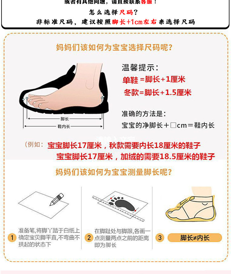 | Размер обуви: | 21 -ярд обуви по длине около 13,5 см, 22 -Сайда обувь по длине около 14 см., 23 -ярд обуви по длине около 14,5 см, 24 -ярд обуви по длине около 15 см в длину, 25 -ярд обуви по длине около 15,5 см, 26 -ярд обуви имеет длину около 16 см., 27 -ярд обуви по длине около 16,5 см, 28 -Ярды обуви по длине около 17 см., 29 -ярд обуви по длине около 17,5 см, 30 -ярдовые туфли по длине около 18 см., 31 -ярдовый туфли длиной около 18,5 см., 32, 19см, Длина ноги +1 см = внутренняя длина обуви |
