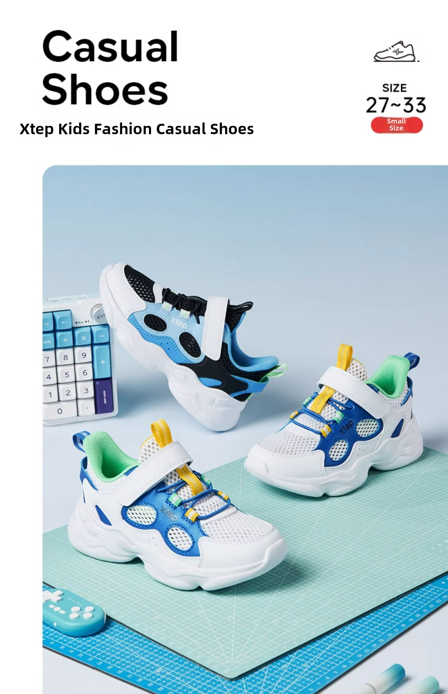 Xtep, детская амортизирующая спортивная обувь для мальчиков на липучке, модель весна/осень 2025 года, осенняя