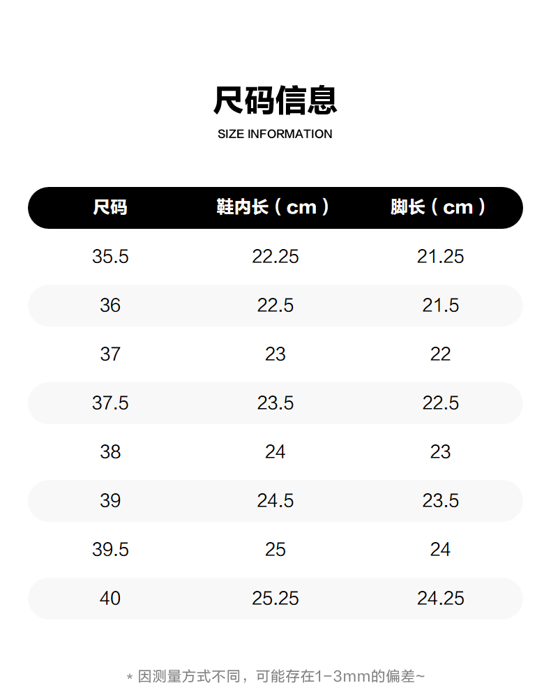 | Размер обуви: | 35,5 ярдов (22,25 внутри (внутри 22,25), 36 ярдов (внутри 22,5), 37 ярдов (внутри 23), 37,5 ярдов (внутри 23,5), 38 ярдов (внутренняя длина 24), 39 ярдов (внутренняя длина 24,5), 39,5 ярдов (внутренняя длина 25), 40 ярдов (внутренняя длина 25,25) |