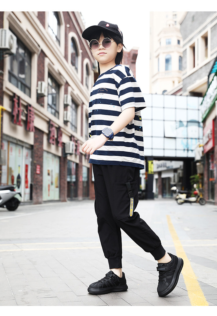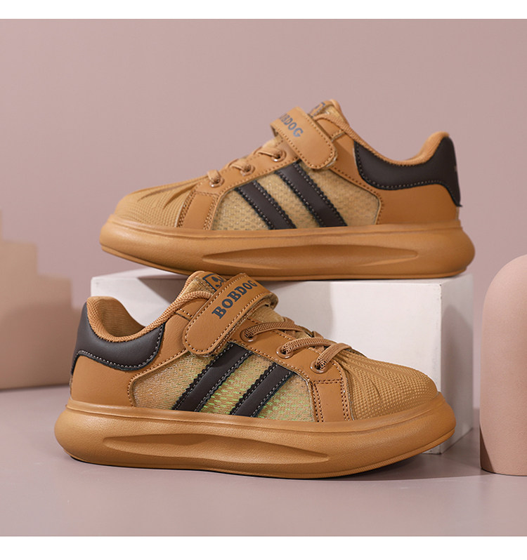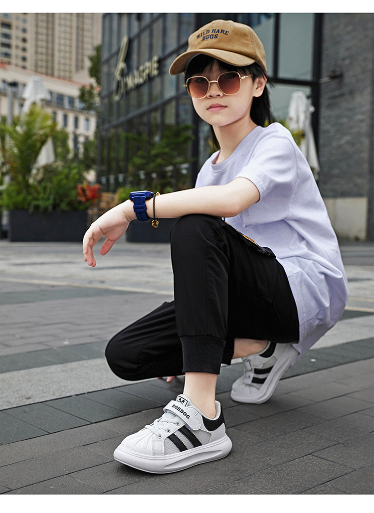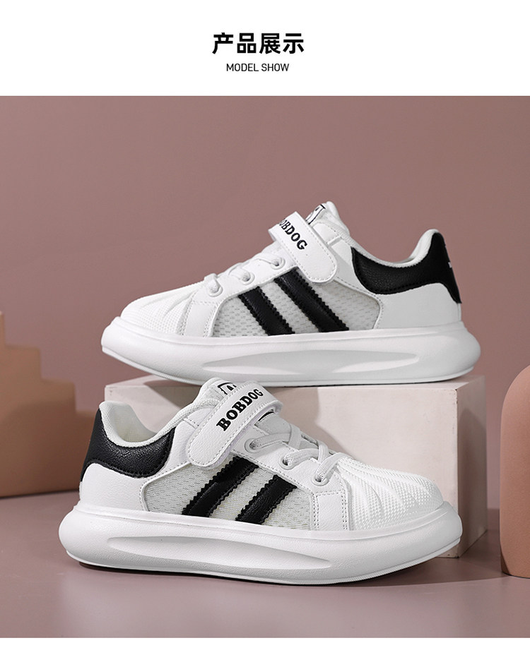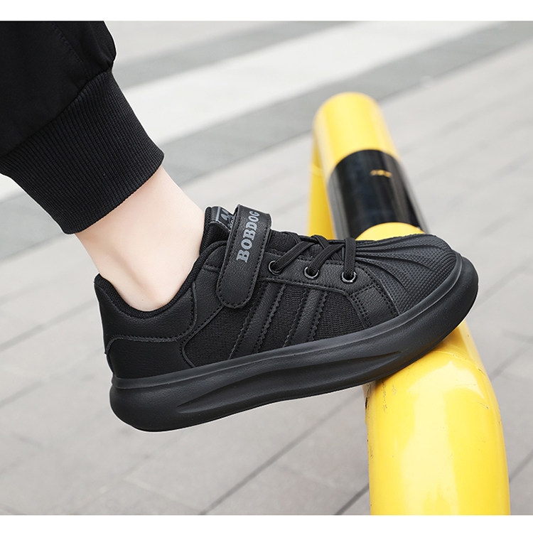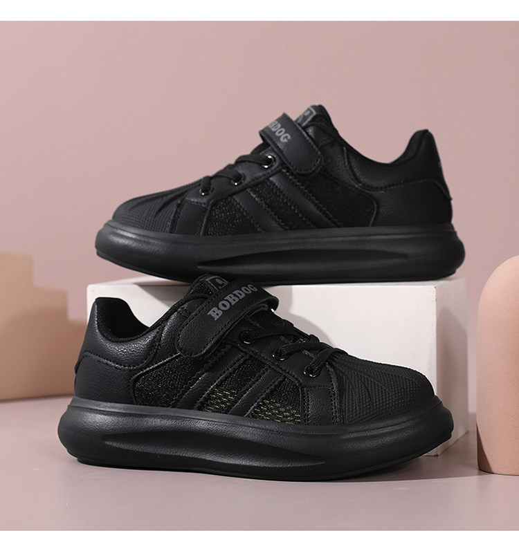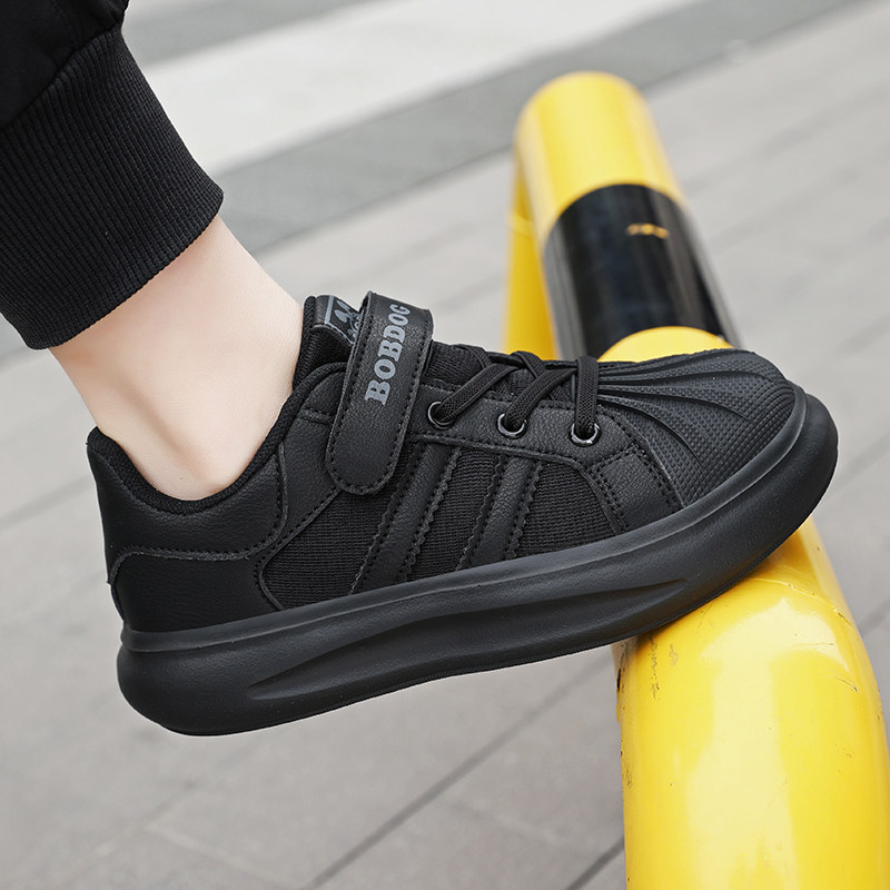 巴布豆 Обувь для мальчиков, весна-осень 2024, туфли с открытым носком, детская черная спортивная обувь для начальной школы, повседневная обувь с сеткой