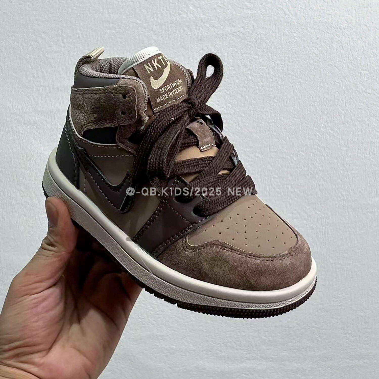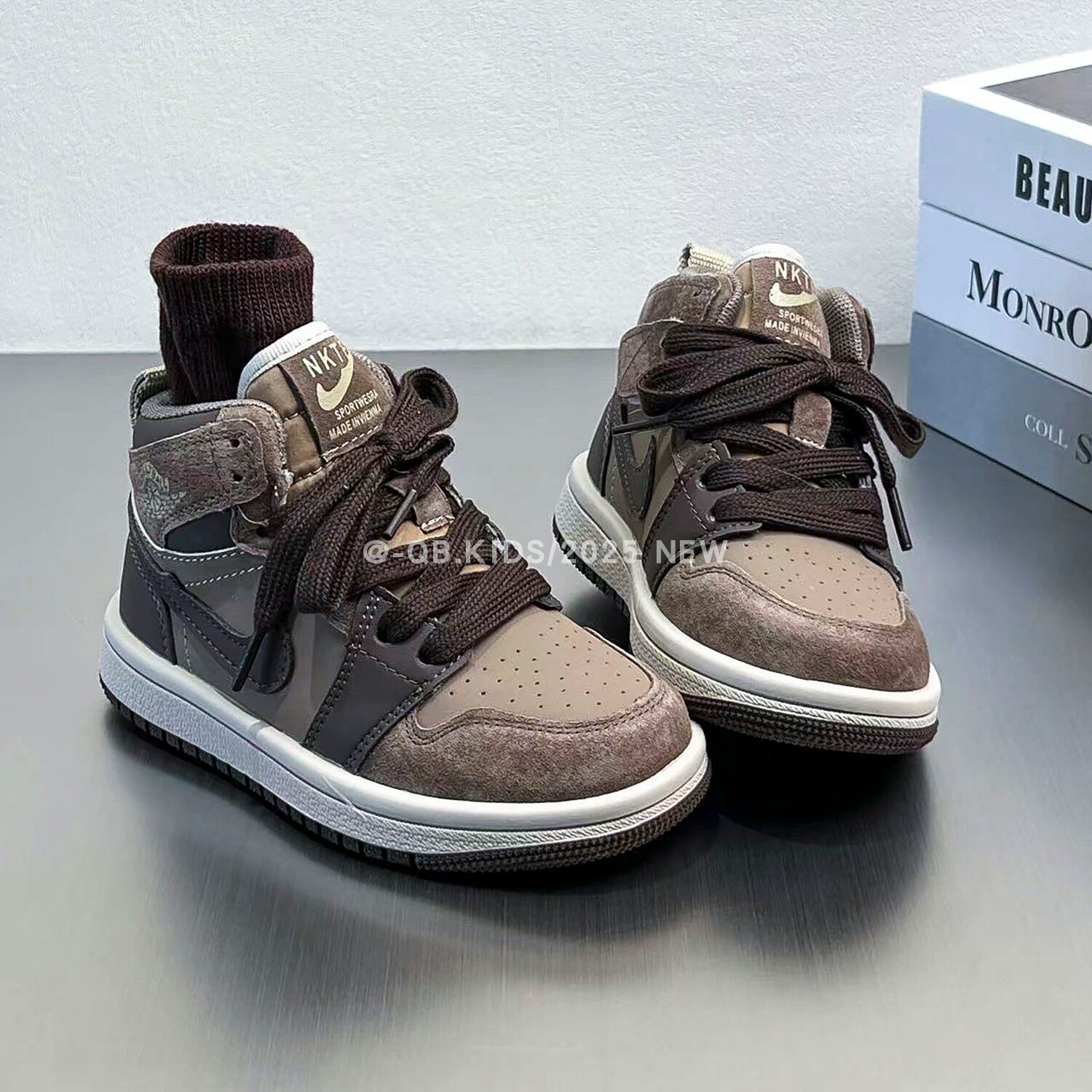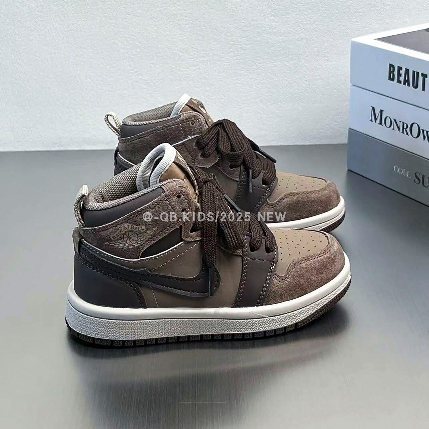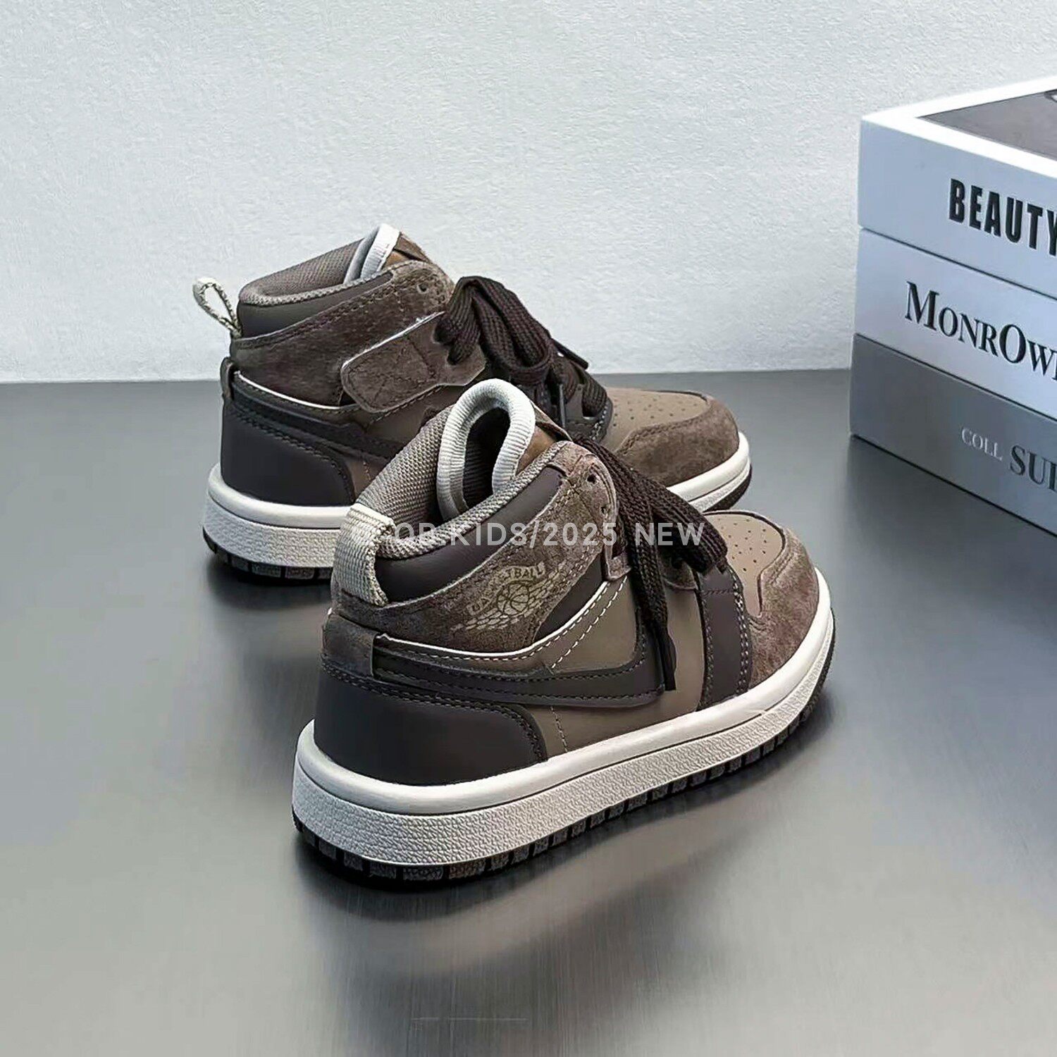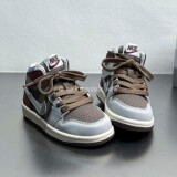 Air jordan, демисезонная спортивная обувь для мальчиков, коричневые детские высокие нескользящие кроссовки, повседневная обувь, из натуральной кожи, подходит для подростков