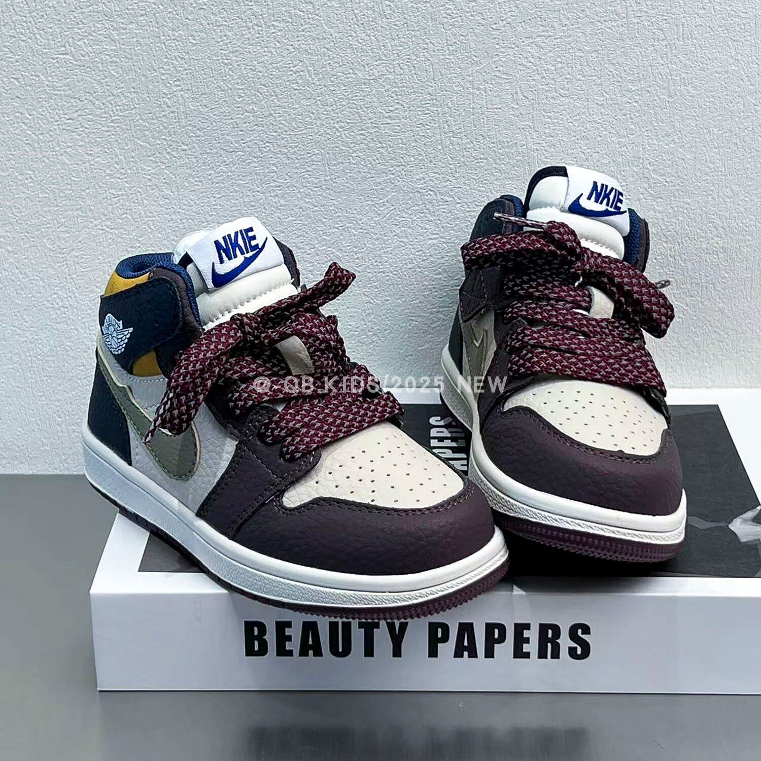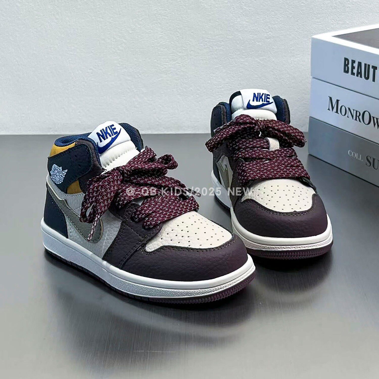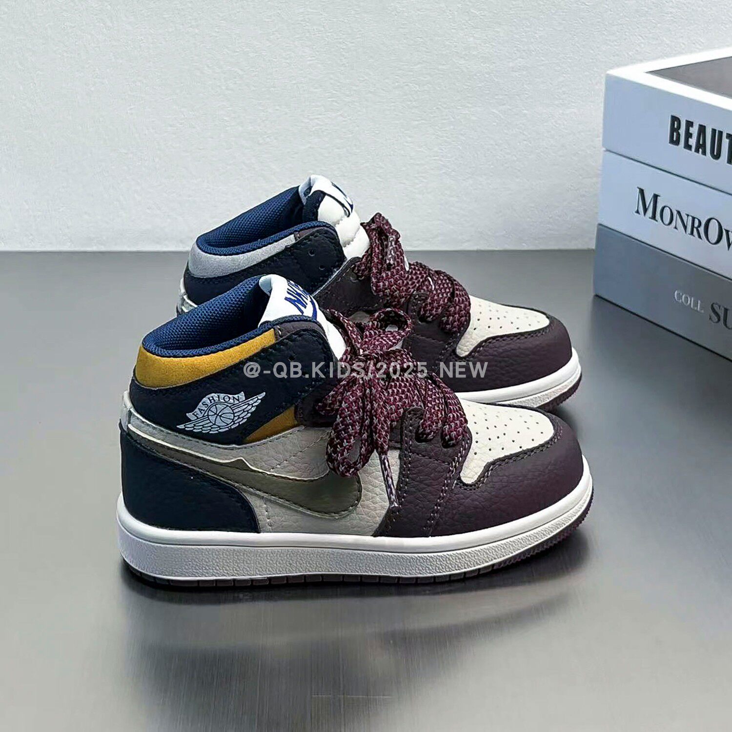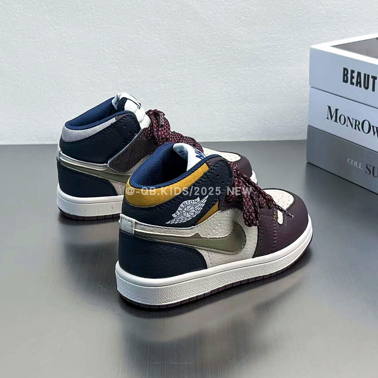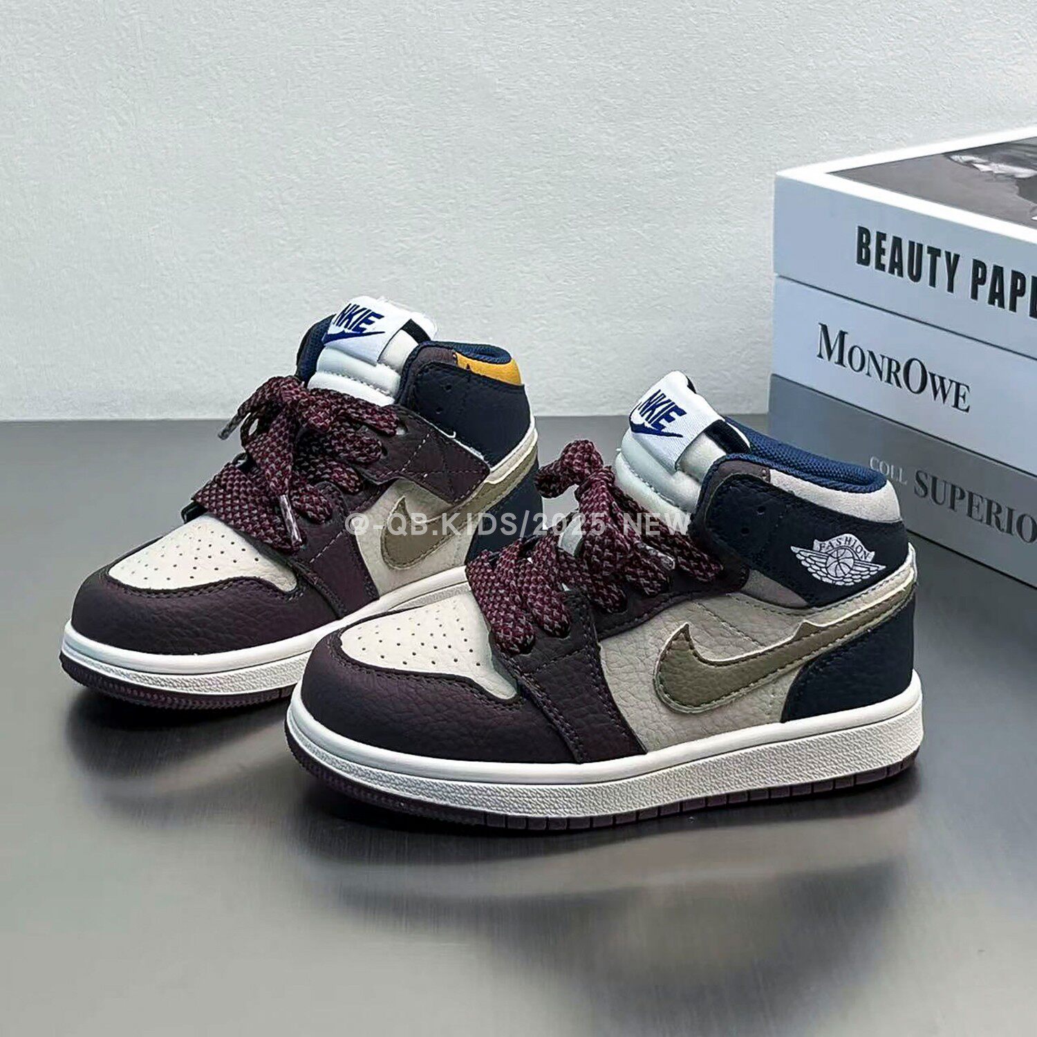 Air jordan, демисезонная спортивная обувь для мальчиков, коричневые детские высокие нескользящие кроссовки, повседневная обувь, из натуральной кожи, подходит для подростков