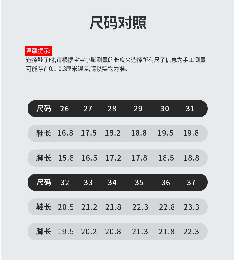 | Размер обуви: | Размер 26 подходит на ногу длиной около 15,8 см., Размер 27 подходит на ногу длиной около 16,5 см., Размер 28, подходит для длины ног приблизительно 17,2 см., 29 ярдов, подходящие по длине около 17,8 см., Размер 30 подходит на ногу длиной около 18,5 см., Размер 31 подходит на ногу длиной около 18,8 см., 32, 19.5см, Размер 33 подходит на ногу длиной около 20,2 см., Размер 34 подходит на ногу длиной около 20,8 см., Размер 35 подходит на ногу длиной около 21,3 см., 36, 21.8см, Размер 37 подходит на ногу длиной около 22,3 см. |