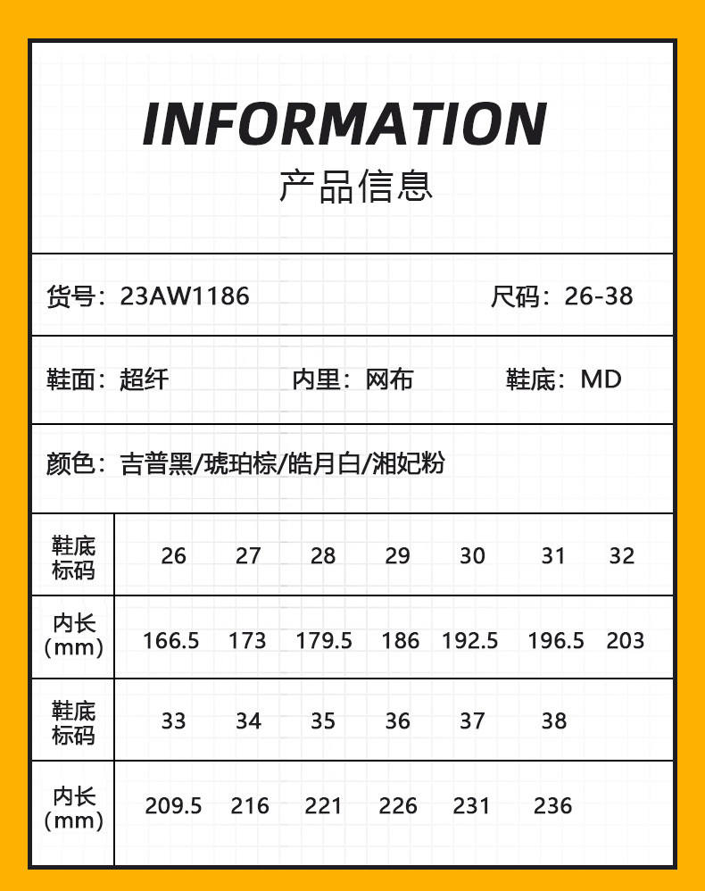 | Размер обуви: | 26 -ярдовые туфли по длине около 16,6 см, 27 -ярд обуви составляет около 17,3 см в длину, 28 -ярд обуви составляет около 17,9 см в длину, 29 -ярд обуви по длине около 18,6 см., 30 -ярдовые туфли по длине около 19,2 см, 31 -ярдовый туфли по длине около 19,6 см, 32, 20.3см, 33 ярдов обуви по длине около 20,9 см., 34 ярдов обувь внутри 21,6 см, 35 ярдов обуви по длине около 22,1 см, 36, 22.6см, 37 ярдов обуви по длине около 23,1 см, 38, 23.6см |