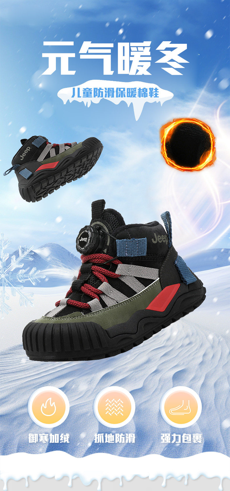Jeep, детские утепленные сапоги для отдыха, спортивная удерживающая тепло спортивная обувь