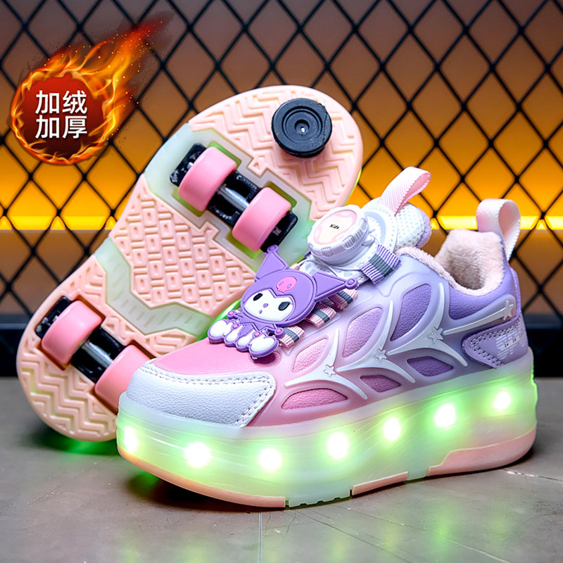 Флисовый зимний наряд маленькой принцессы, коньки, невидимая обувь на четырех колесах