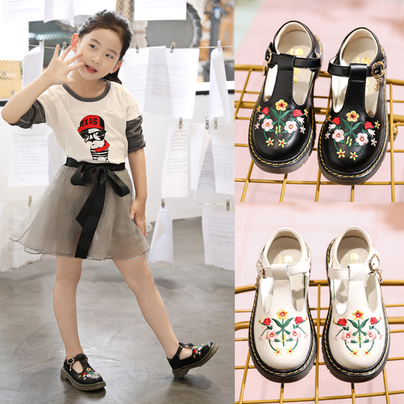 Наряд маленькой принцессы для кожаной обуви, осенняя черная этническая обувь для школьников с низким вырезом, из натуральной кожи, этнический стиль