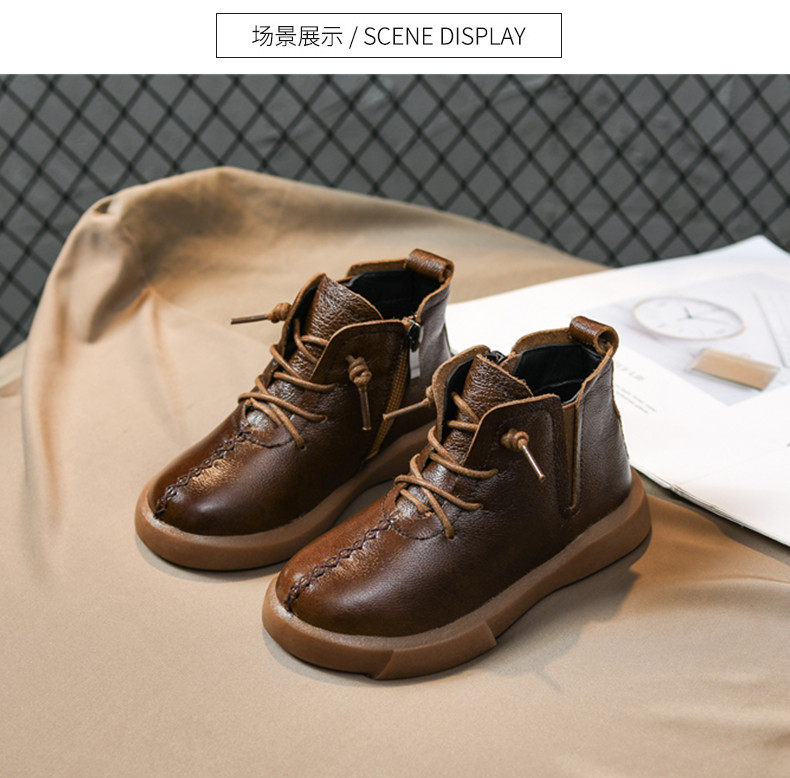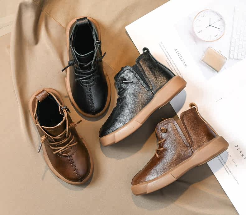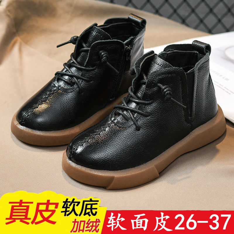 Boy Boots Black British Style Corean версия 2020 Tide Winter Детская кожаная обувь мужчина плюс бархатная двухбота для детской обувь