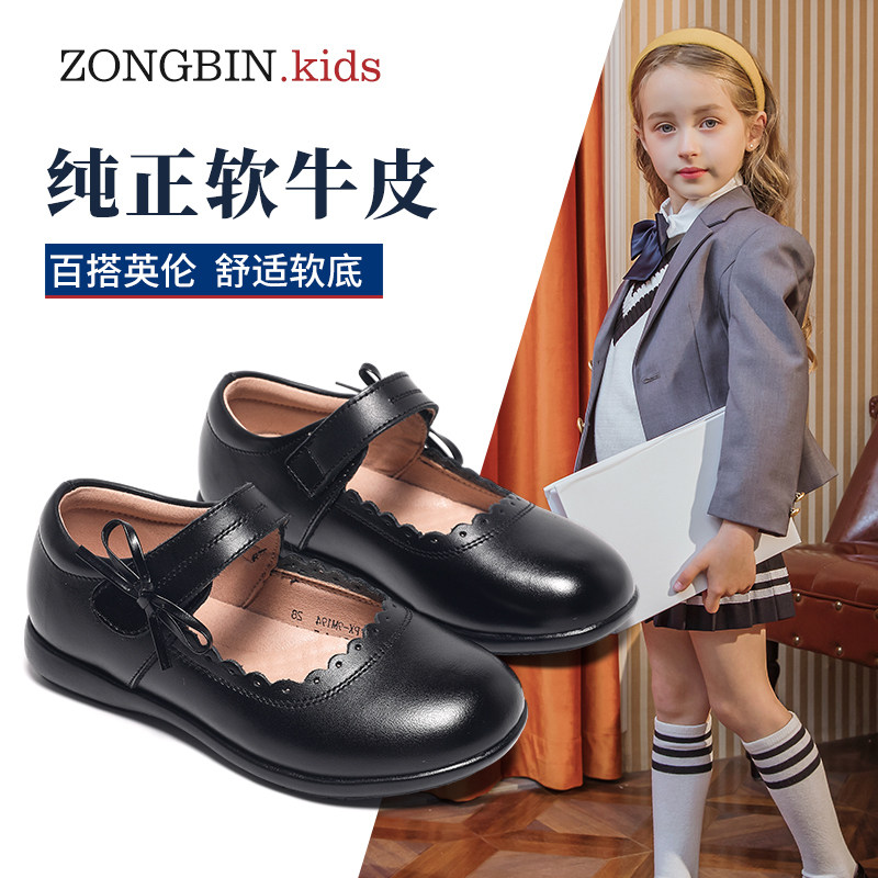 Девочки черная кожаная туфли кожа девочка мягкая нижняя обувь для принцессы детская одиночная обувь в британском стиле ученики начальной школы весна и осенняя обувь