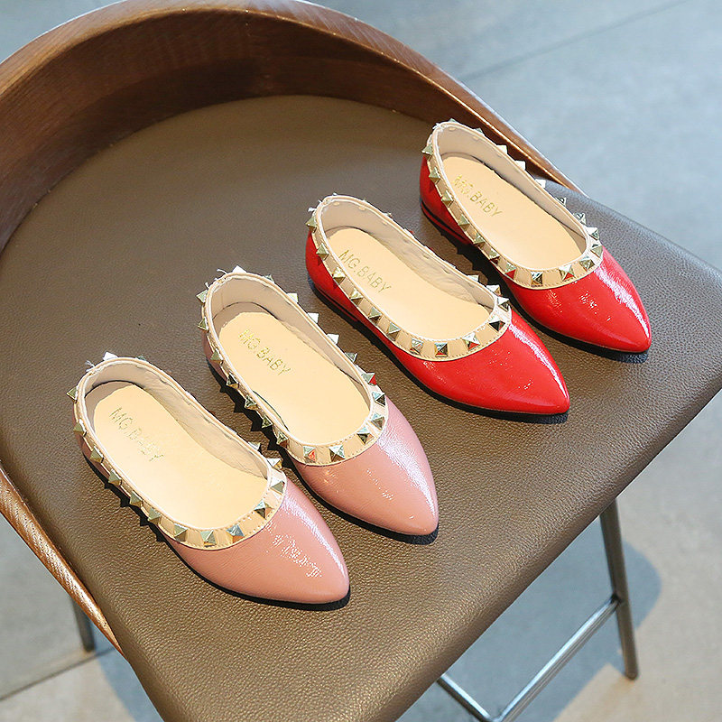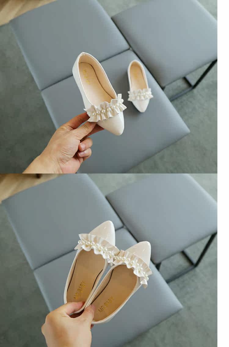 Девочки Scoop Shoes 2022 Весна и осенняя светлая точка одиночная обувь одиночная обувь маленькая девочка Жемчужина набор лодочных туфли детские кожаные туфли