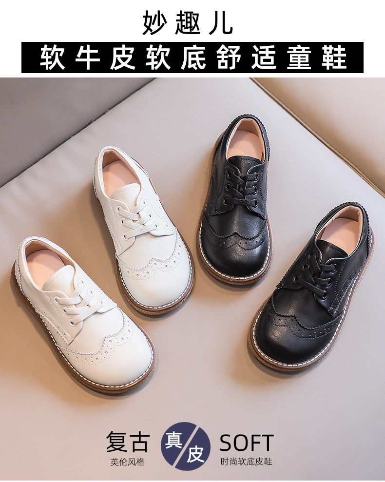 妙趣儿 Весенняя детская обувь для кожаной обуви в английском стиле, из натуральной кожи, мягкая подошва