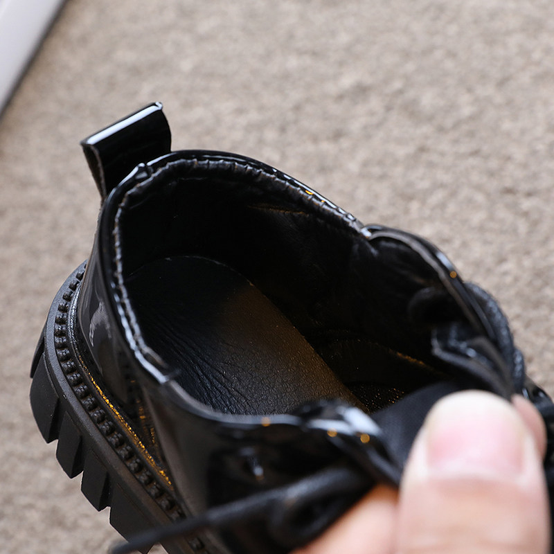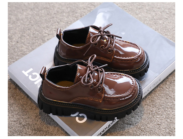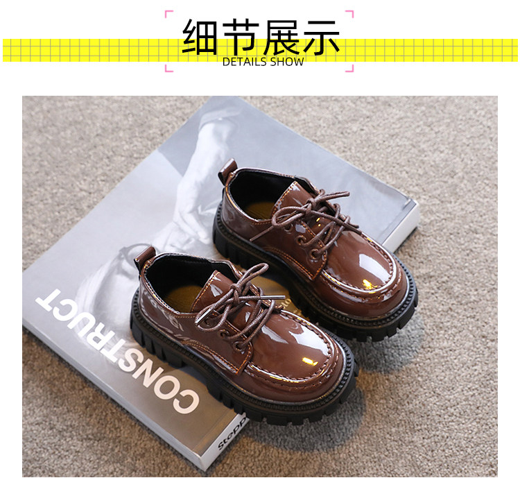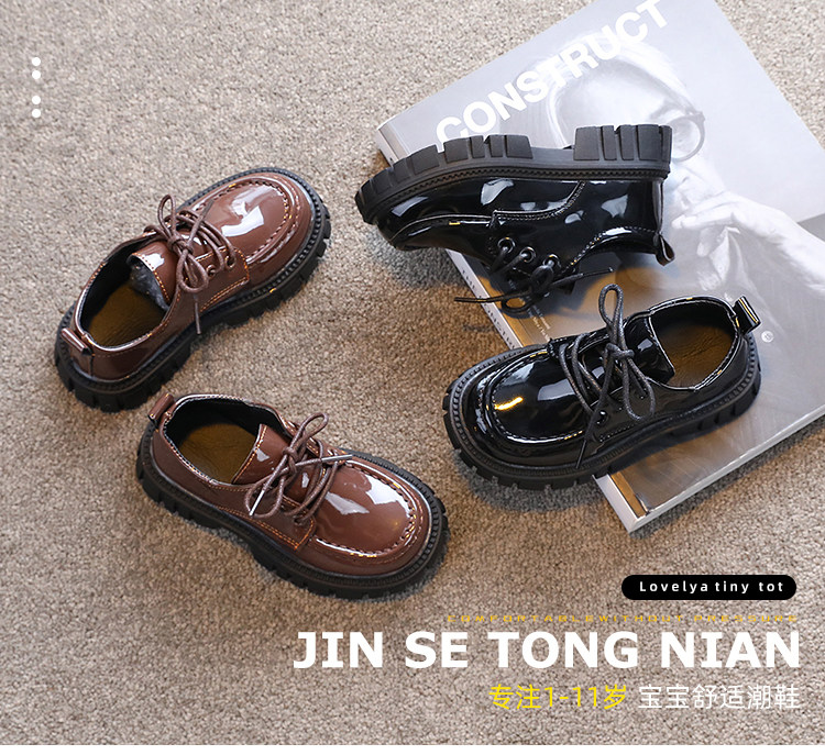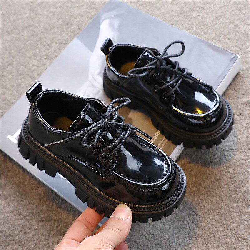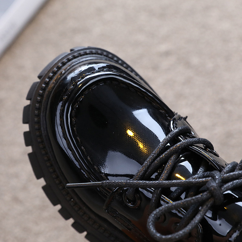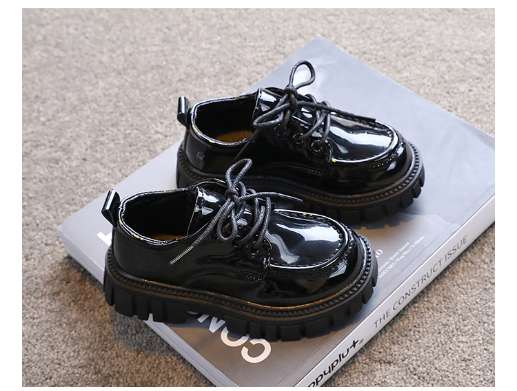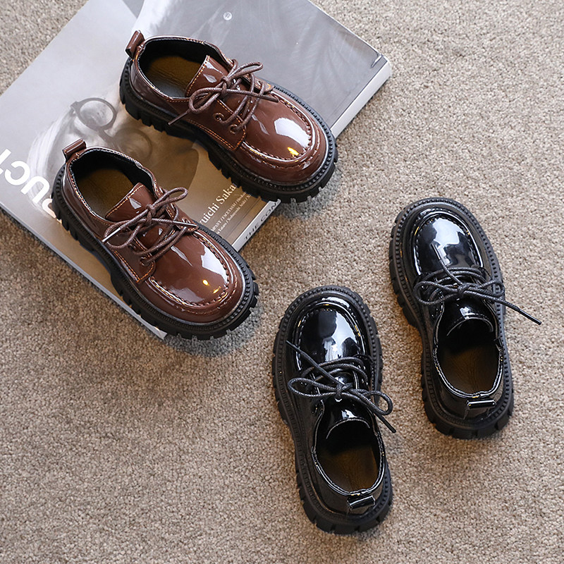 Детская кожаная обувь. Осень 2025. Новые британские стильные большие детские туфли на шнуровке. Нескользящие шапочки из лакированной кожи на толстой подошве.