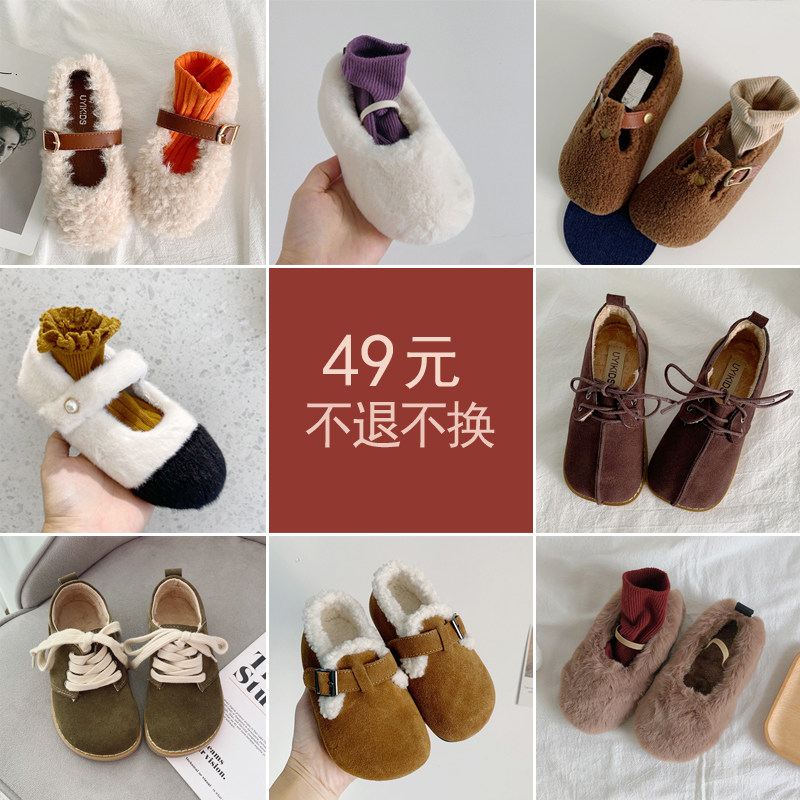 [Ограниченная по времени распродажа] Корейская версия детской плюшевой меховой обуви, повседневной обуви для девочек, одиночной обуви, детской студенческой обуви принцессы-4