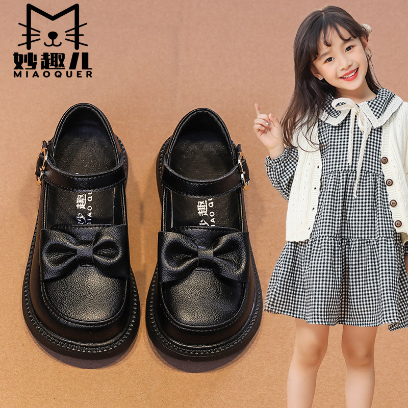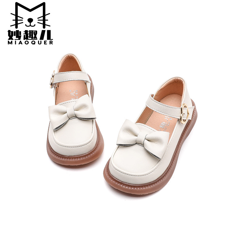 妙趣儿 Осенняя детская обувь для кожаной обуви для девочек, наряд маленькой принцессы, модель весна/осень 2025 года, из натуральной кожи, мягкая подошва