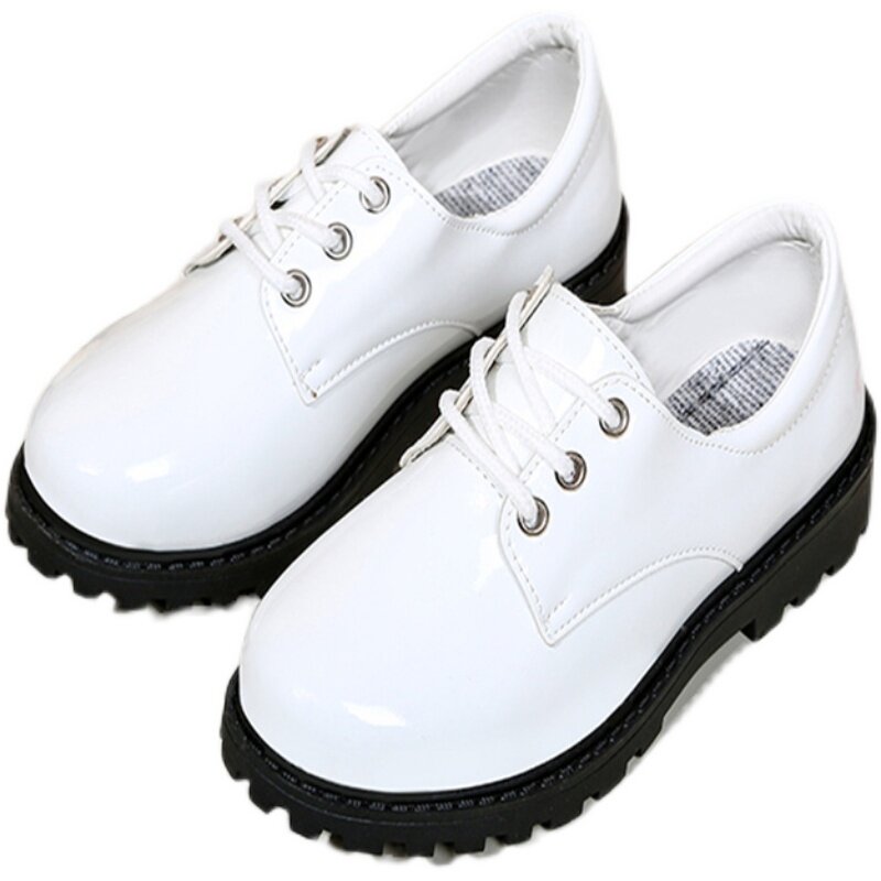 Детская черная белая обувь для кожаной обуви для мальчиков в английском стиле, мягкая подошва, подходит для подростков, благородный крой