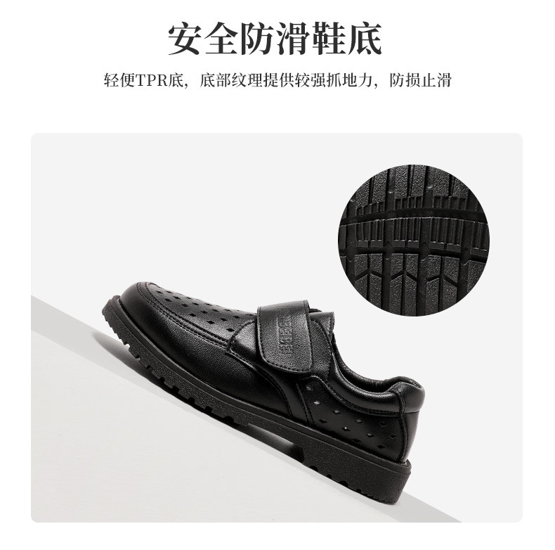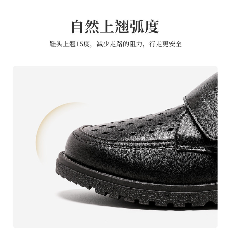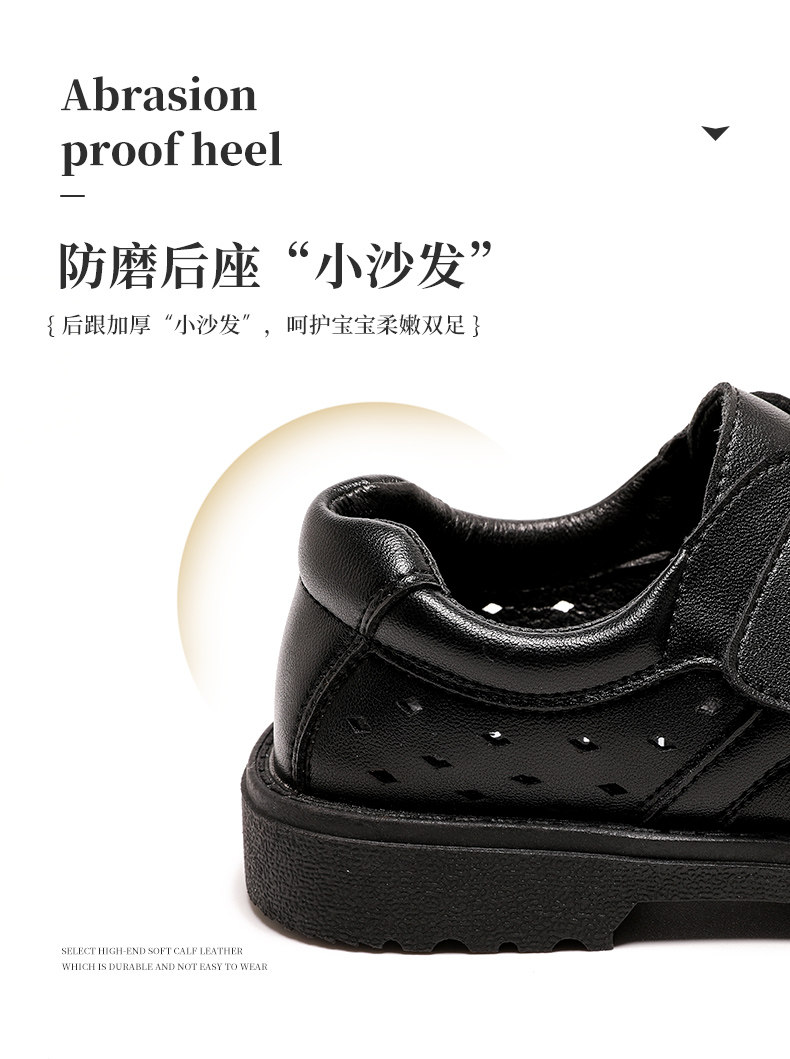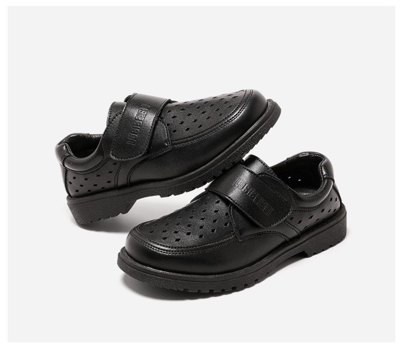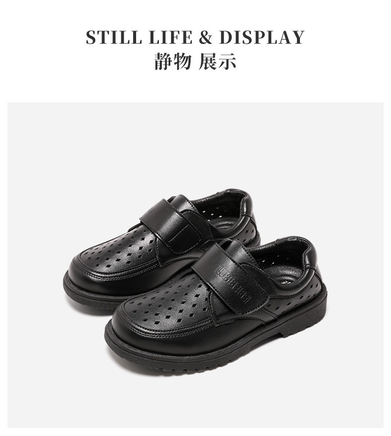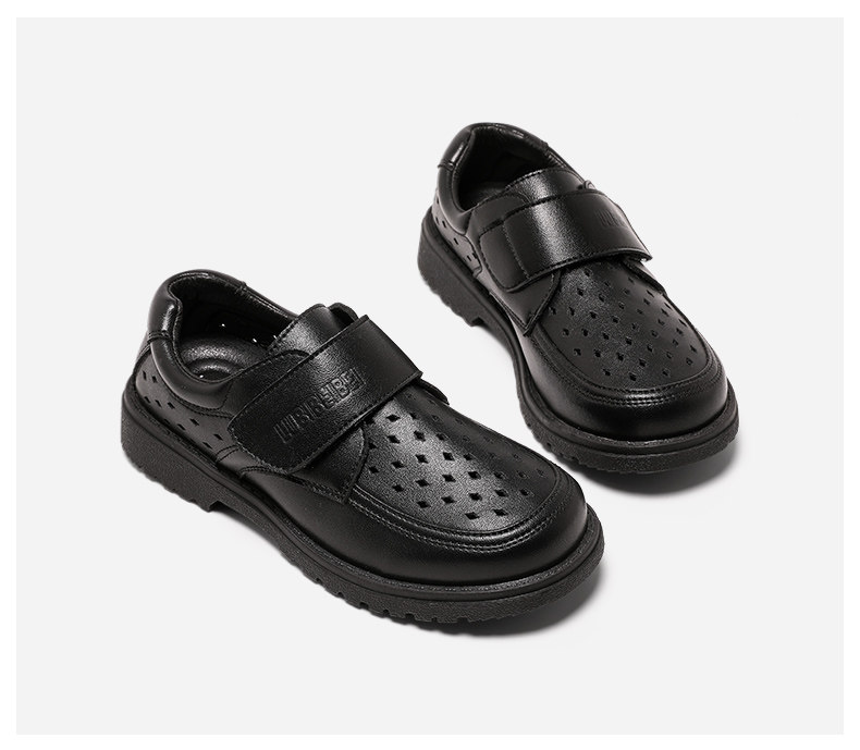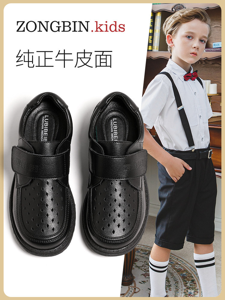 Черные туфли для мальчиков Черное мягкое дно 2024 весна и летние студенты исполняют большие девочки, пустота и дышащие детские кожаные туфли