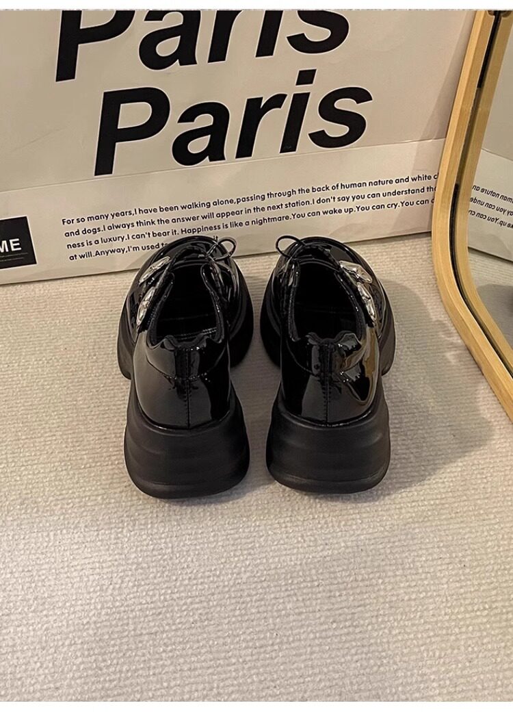 Осенний черный наряд маленькой принцессы для кожаной обуви, лоферы, обувь, модель весна/осень 2025 года, мягкая подошва, в западном стиле, подходит для подростков