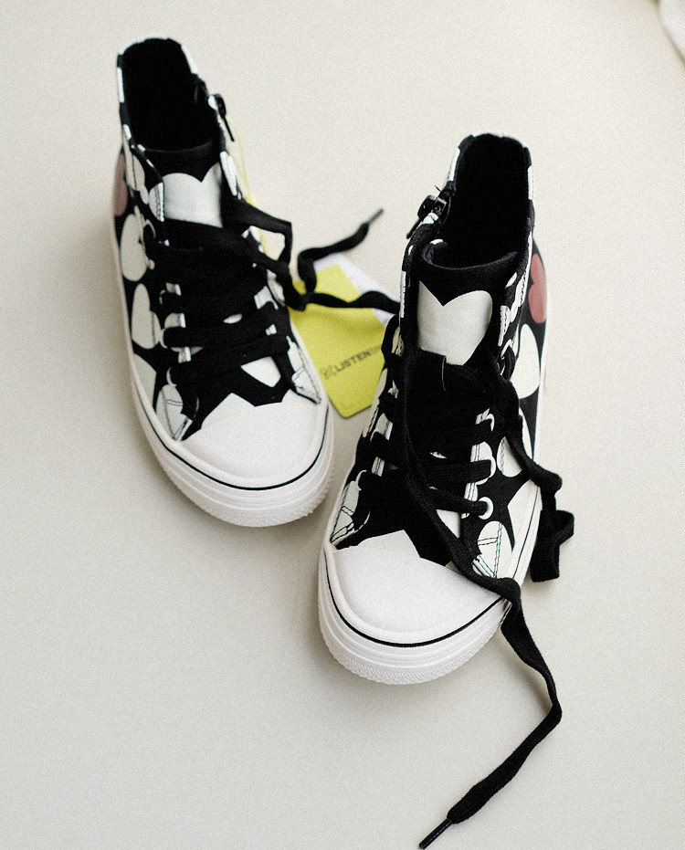 Черные модные парусиновые туфли с высоким берцем для девочек, кроссовки OT405