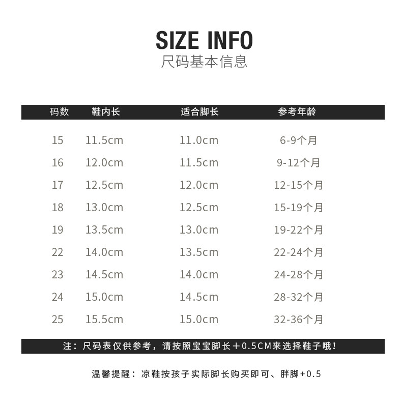 | Размер обуви: | 12 см в 15 ярдах, 12.5см, 13 см в 17 ярдах, 13.5см, 19 ярдов длиной 14 см, 14 см в 22 ярдах, 14.5см, 15 см в 24 ярдах, 15.5см |