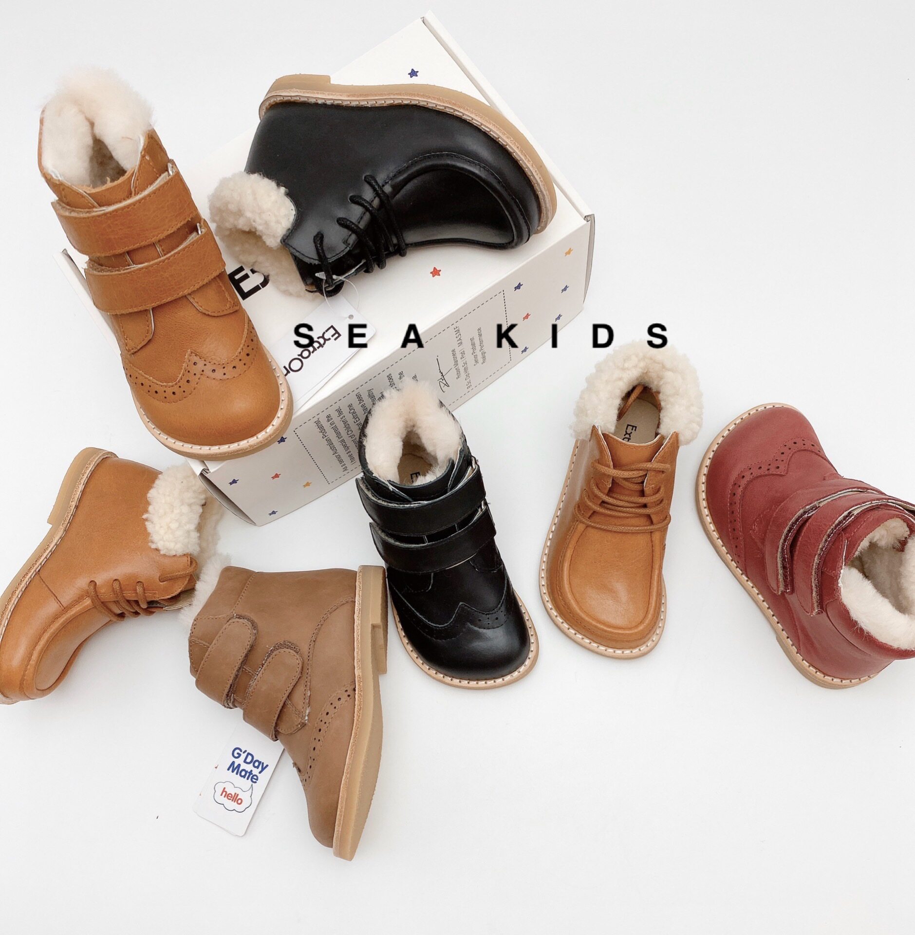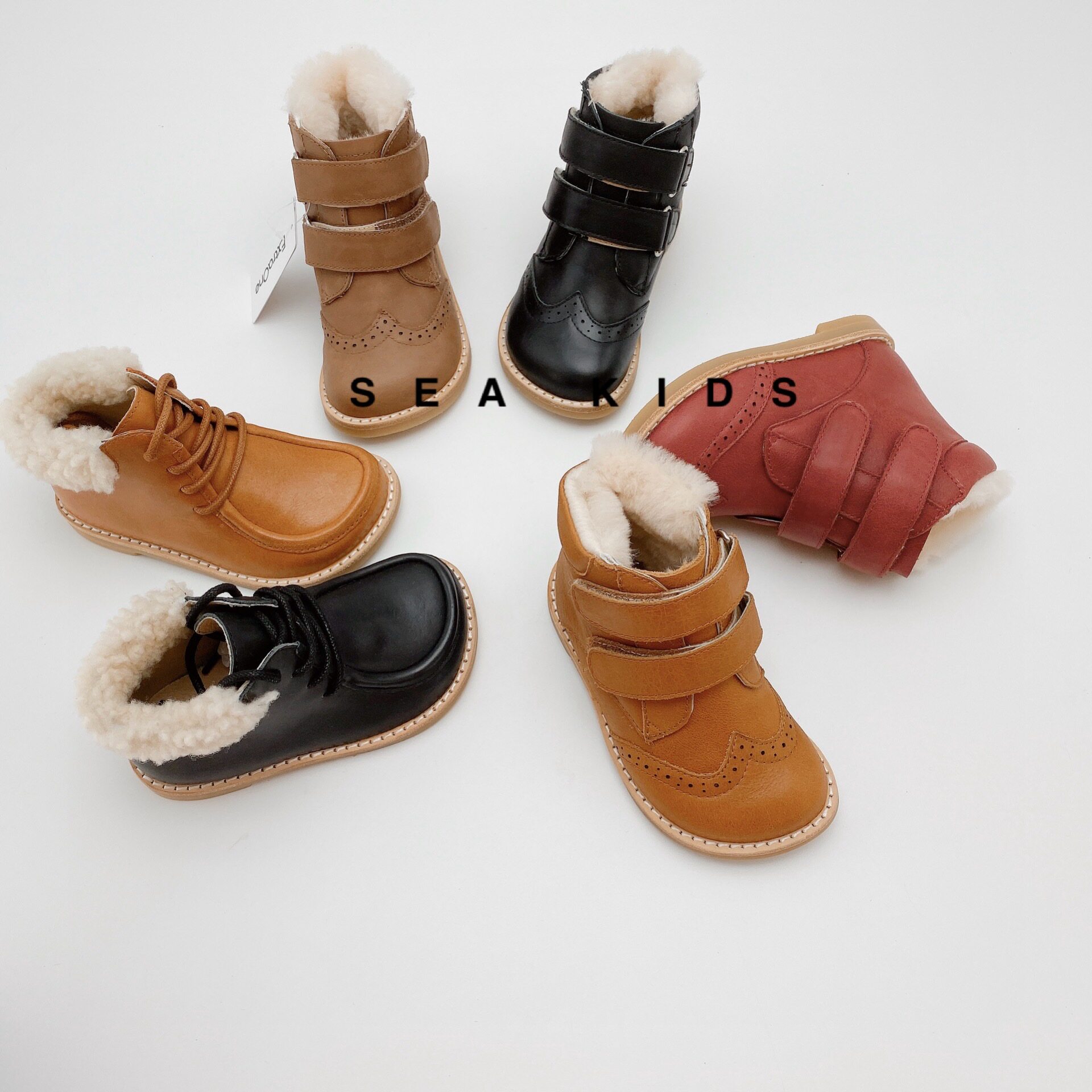Spot Extrenone Calfskin Зимние детские шерстяные зимние ботинки небольшие сапоги мех по всему снежным ботинкам