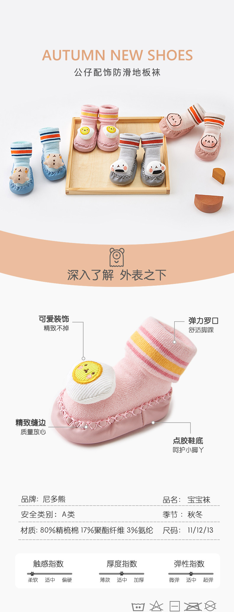 Детские хлопковые демисезонные нескользящие носки, утепленные удерживающие тепло гетры для раннего возраста, мягкая подошва