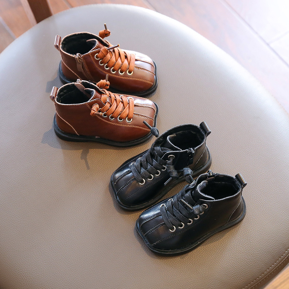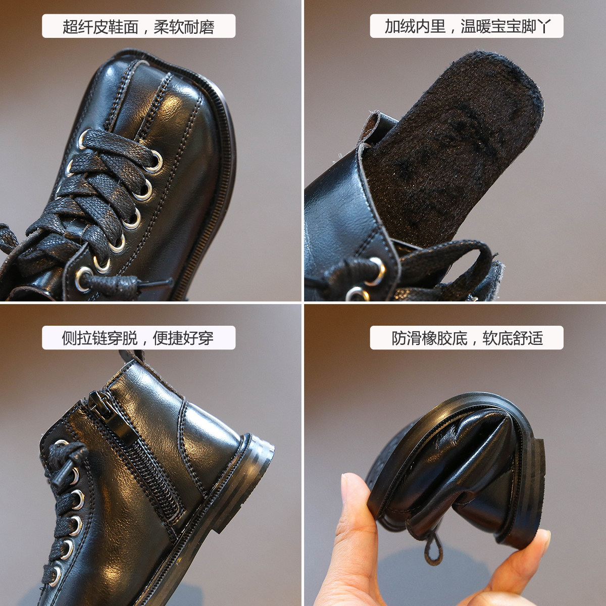 Martens, ботинки для девочек, флисовые детские короткие сапоги, зимняя обувь для принцессы