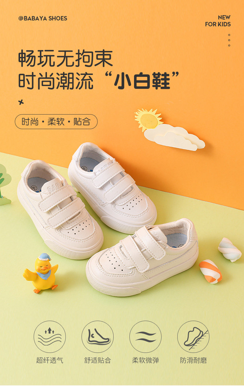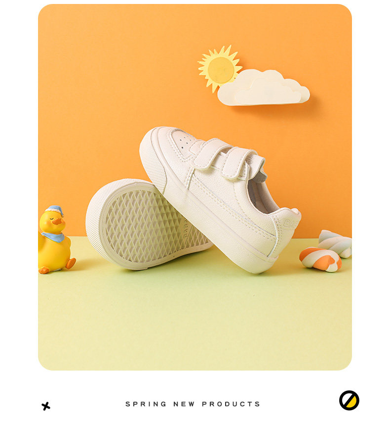 芭芭鸭 Детская весенняя белая обувь для раннего возраста, кроссовки подходит для мужчин и женщин, повседневная обувь, 1-3 лет, тренд сезона