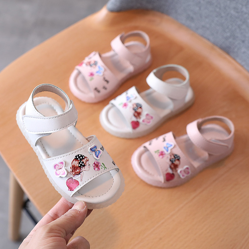 Летние сандалии, модная мультяшная милая детская пляжная обувь для принцессы, мягкая подошва