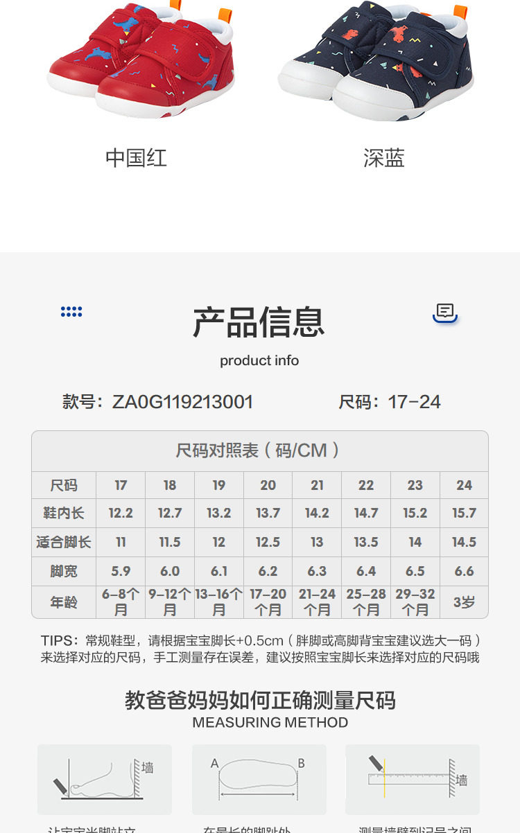 | Размер обуви: | [17码/适合脚长11cm], [18码/适合脚长11.5cm], [19码/适合脚长12cm], [20码/适合脚长12.5cm], [21码/适合脚长13cm], [22码/适合脚长13.5cm], [23码/适合脚长14cm], [24码/适合脚长14.5cm] |