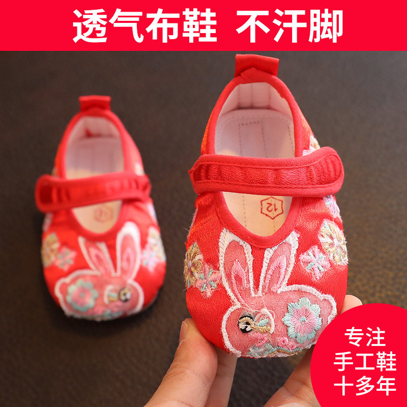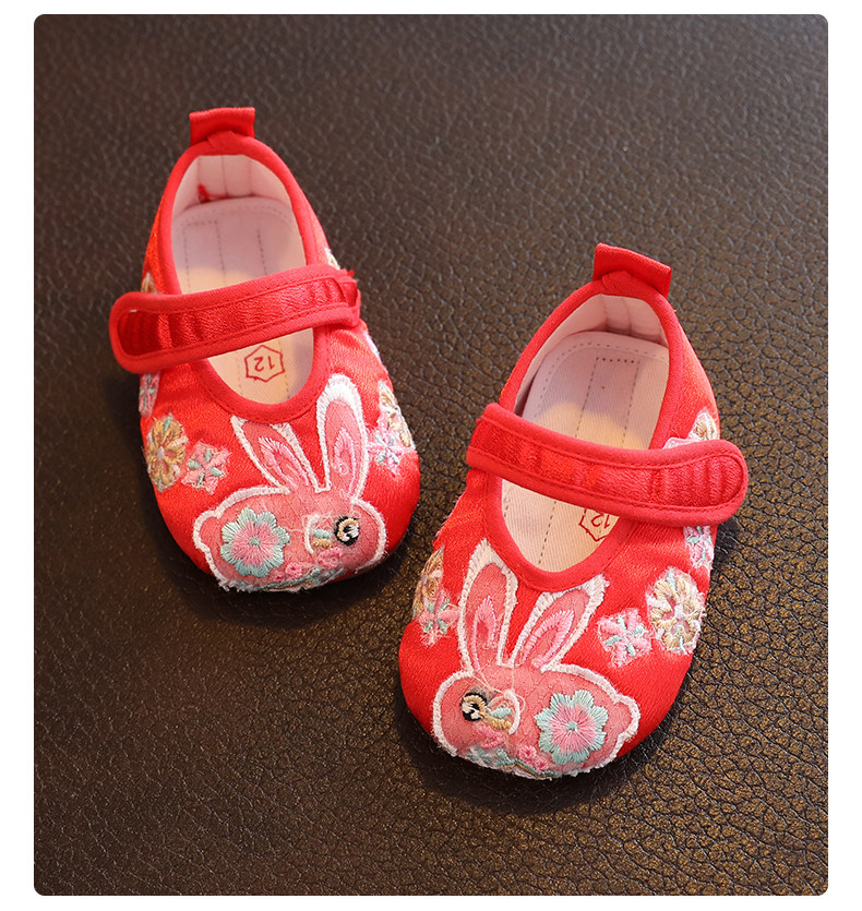 Красное детское ханьфу для девочек, детский кролик для раннего возраста, удобная обувь, мягкая подошва