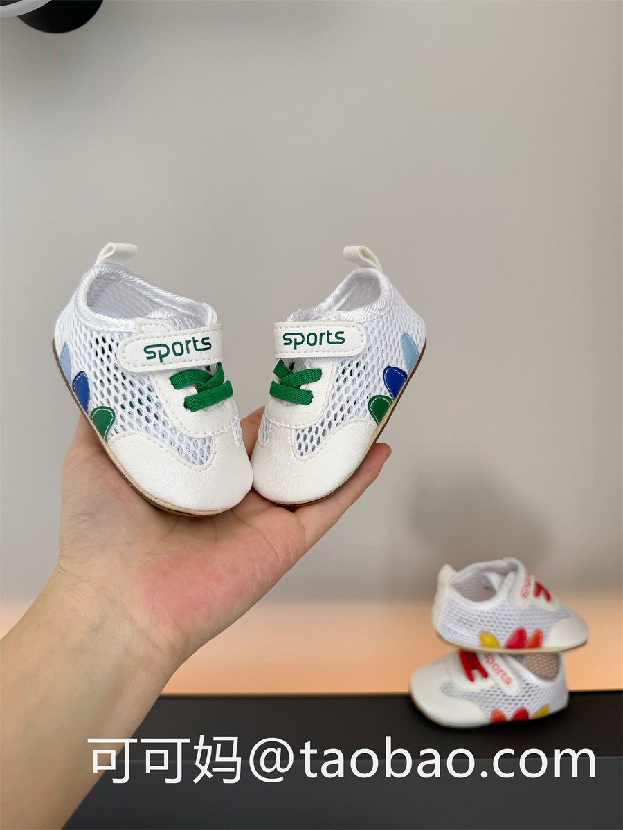 2024 весенне-летняя обувь для малышей 6–12 месяцев для мальчиков и девочек, мягкая подошва для годовалых детей, нескользящая резиновая подошва, обувь из дышащей сетки.