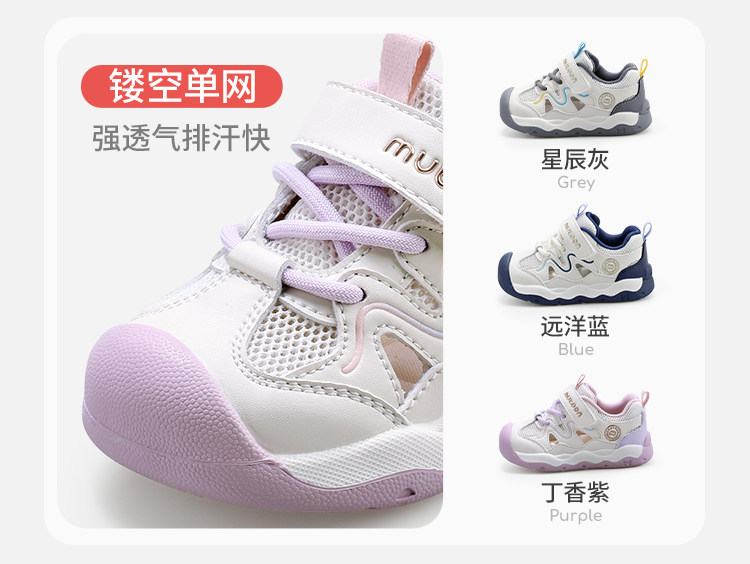 牧童 Детская обувь для малышей, весна-лето 2026, новые устойчивые туфли на мягкой подошве для девочек с защитой от столкновений, детская обувь с сеткой для мальчиков