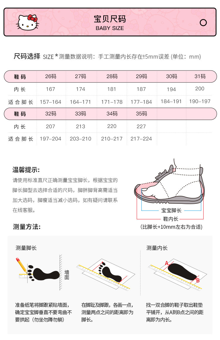 | Размер обуви: | [26码/内长约16.7cm], [27码/内长约17.4cm], [28码/内长约18.1cm], [29码/内长约18.7cm], [30码/内长约19.4cm], [31码/内长约20cm], [32码/内长约20.7cm], [33码/内长约21.3cm], [34码/内长约22cm], [35码/内长约22.7cm] |