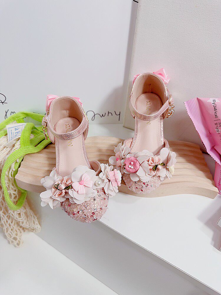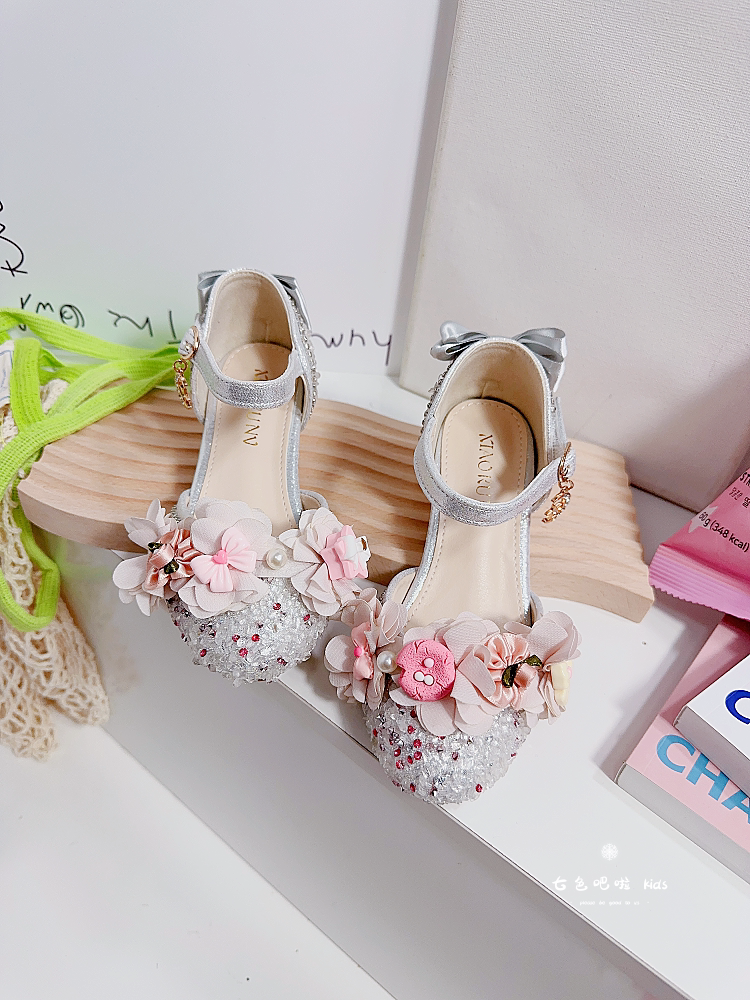 Сандалии для принцессы на высоком каблуке, в цветочек, мягкая подошва, подходит для подростков