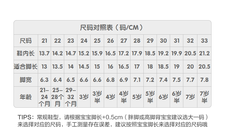 | Размер обуви: | 21 ярды/подходящие длина футов 13 см, 22 ярда/подходящая длина футов 13,5 см, 23 ярда/подходящие длина футов 14 см., 24 ярда/подходящая длина футов 14,5 см, 25 ярдов/подходящих футов в длину 15 см, 26 ярдов/подходящие длина футов 16 см., 27 ярдов/подходящих футов длиной 16,5 см, 28 ярдов/подходящие длина футов 17 см., 29 ярдов/подходящие длина футов 18 см., 30 ярдов/подходящие длина футов 18,5 см, 31 ярды/подходящие длина футов 19 см., 32 ярда/подходящая длина футов 20 см., 33 ярда/подходящая длина футов 20,5 см |