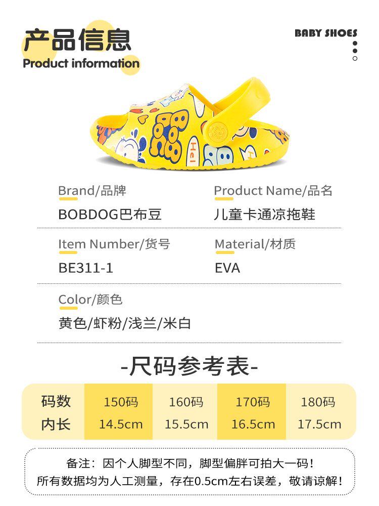 Bobdog/巴布豆 Летние тапочки, детские нескользящие слайдеры, дышащие комфортные туфли