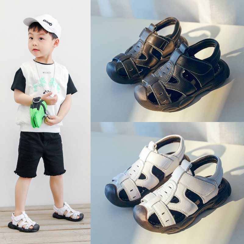 Летние сандалии для мальчиков, универсальная детская черная модная обувь, 2021 года, из натуральной кожи