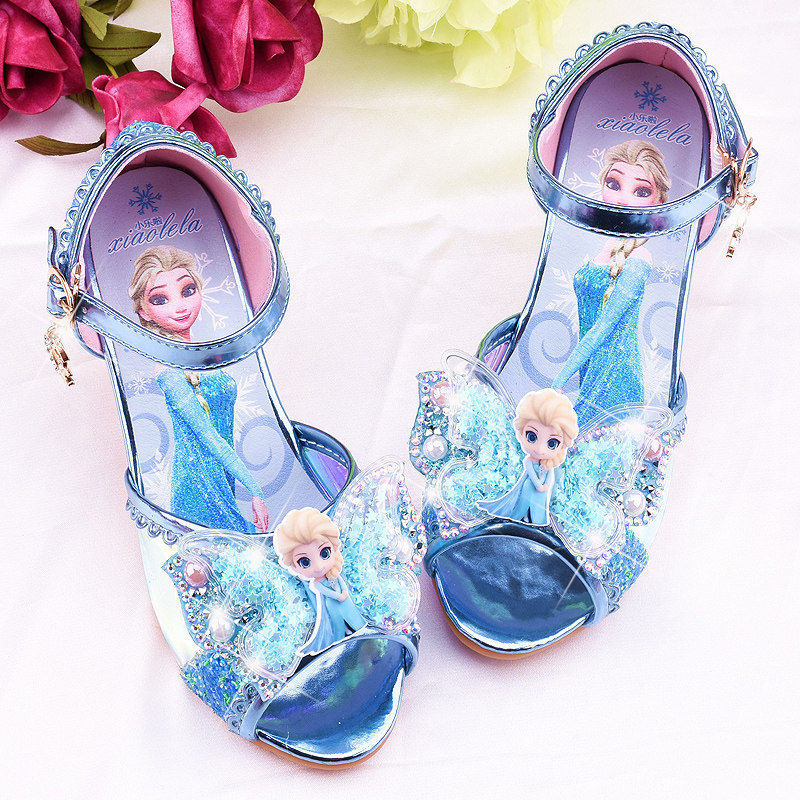 Детские мультяшные летние сандалии на высоком каблуке для принцессы
