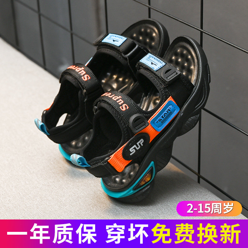Летние сандалии для мальчиков, детская спортивная пляжная обувь, из натуральной кожи, мягкая подошва