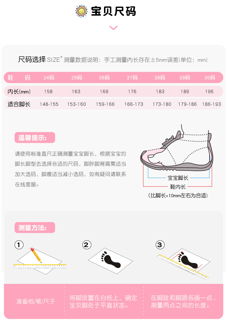 | Размер обуви: | Размер 24/внутренняя длина 15,8 см., Размер 25/внутренняя длина 16,3 см., Размер 26/внутренняя длина 16,9 см., 27 ярдов/внутренняя длина 17,6 см, Размер 28/внутренняя длина 18,3 см., Размер 29/внутренняя длина 18,9 см., Размер 30/внутренняя длина 19,6 см. |